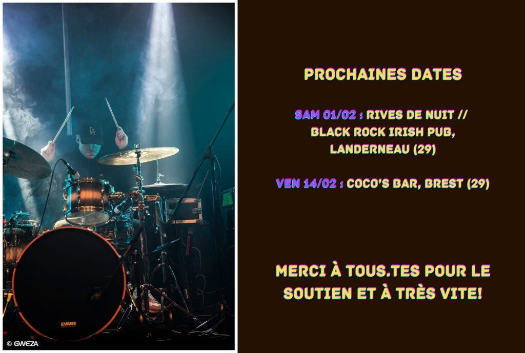 Avec Jean-Baptiste ARNAUD (Basse/choeurs) et Tudi CARIOU (Batterie/programmations), ils font rayonner ces compositions, en enregistrement comme sur scène.